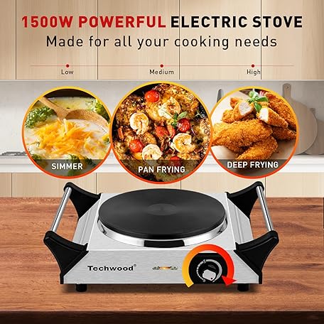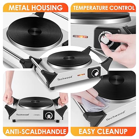 Hot Plate, Techwood Single Burner for Cooking, 1500W Countertop Electric Stove with Adjustable Temperature & Stay Cool Handles, 7.3" Cooktop for RV/Home, Upgraded Version Silver
