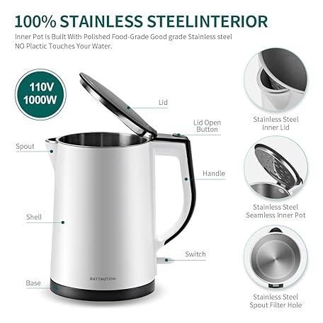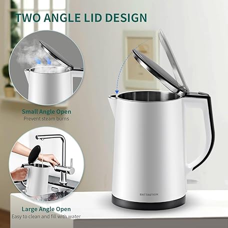 Thương hiệu BATTAUTION là cái tên nổi tiếng được rất nhiều khách hàng trên thế giới chọn lựa. Với kiểu dáng đẹp mắt, sang trọng, sản phẩm Hot Water Kettle Electric, 1.5 Liter 1000W Instant Kettle for Fast Boil Hot Water with Stainless Steel Double Wall White Electric Water Kettle là sự lựa chọn hoàn hảo nếu bạn đang tìm mua một món cho riêng mình.