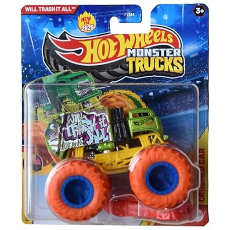 • Hot Wheels Monster Trucks Will Trash It All, Freestyle Wreckers 1/12 Includes Crushed Car