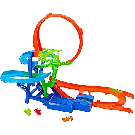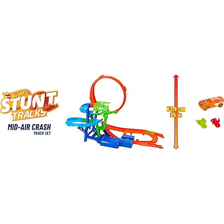 Hot Wheels Toy Car Track Set, Stunt Track Mid-Air Crash with 1:64 Scale Die-Cast Toy Car, Motorized Booster for Non-Stop Stunting & Racing