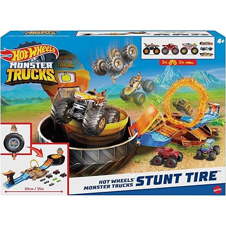 Sản phẩm Hot Wheels Toy Monster Trucks Playset, Tire-Shaped Case Transforms into Race Course, 3 Trucks & 4 Cars in 1:64 Scale, Stunt Tire (Amazon Exclusive) đang được bán với giá ưu đãi là $41.1911 tại nước Mỹ.