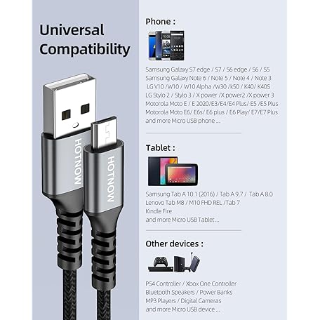 Thông tin sản phẩm HOTNOW Micro USB Cable 3ft 2Pack, Android Charger Cable USB2.0 Data sync and Fast Charging Nylon Braided Cord for Samsung Galaxy S6 S7, HTC, LG, Sony, PS4, MP3, Tablet and More Micro Devices