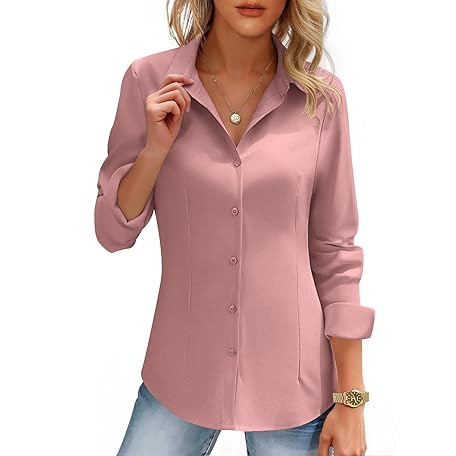 HOTOUCH Women's Button Down Shirts Long Sleeve Dress Shirt Slim Fitted Work Tops Collared Dressy Casual Business Blouses