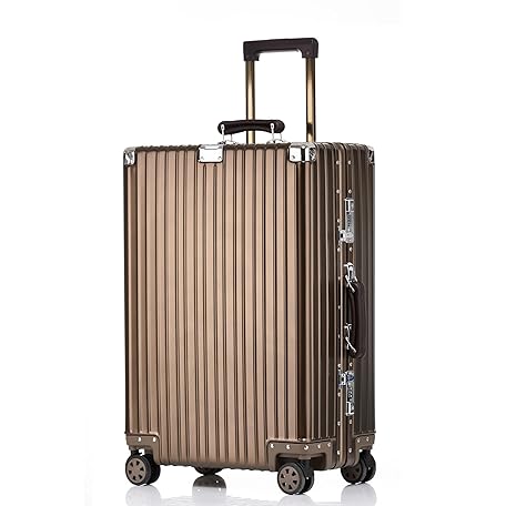 HotWay 20 Inch All Aluminum Carry On Luggage with Leather Handle, Hard Shell Zipperless Suitcase with TSA Locks and Spinner Wheels, Travel Luggage (22x14x9 Airline Approved), Gold
