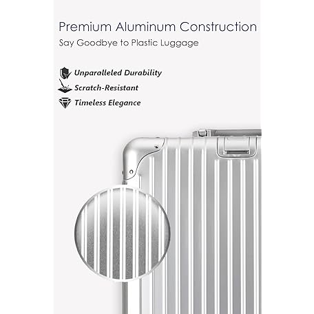 Thông tin sản phẩm HotWay 20 Inch All Aluminum Carry On Luggage with Wheels, Hard Shell Zipperless Suitcase with TSA Locks, Silver Travel Luggage (22x14x9 Airline Approved)