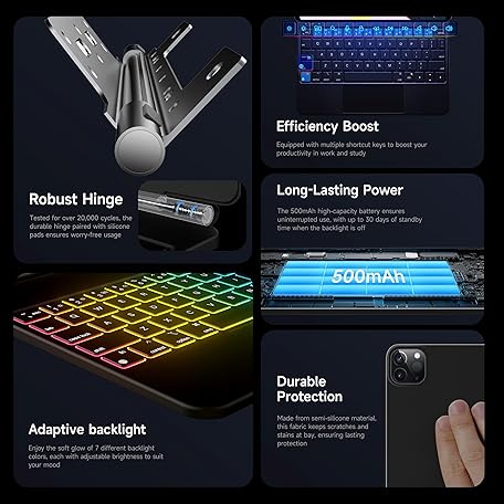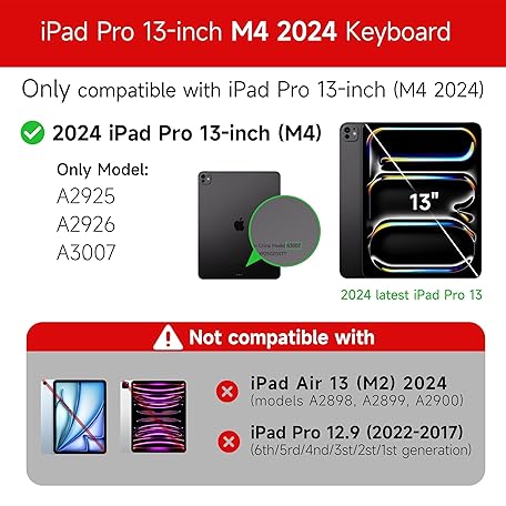 HOU for iPad Pro 13 inch Case 2025 with Keyboard (M5/M4), Keyboard Case for iPad Pro 13 inch Keyboard with Multi-Touch Trackpad, 7 Colors Backlight, Easy-Set Magnetic Stand Bluetooth-Black