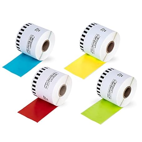 HOUSELABELS Compatible with DK-2205 Replacement Roll for Brother QL Label Printers; Red Yellow Blue Green Continuous Length Labels; 2-4/9" x 100 feet (62mm*30.48m) - 12 Rolls