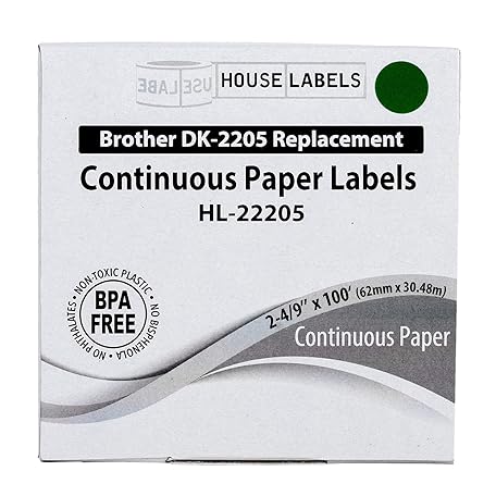 HouseLabels Compatible with DK-2205 Replacement Roll for Brother QL Label Printers; YE GR RD BL OR PK LAV Continuous Length Labels; 2-4/9" x 100 feet (62mm*30.48m) with 1 Reusable Cartridge - 7 Rolls