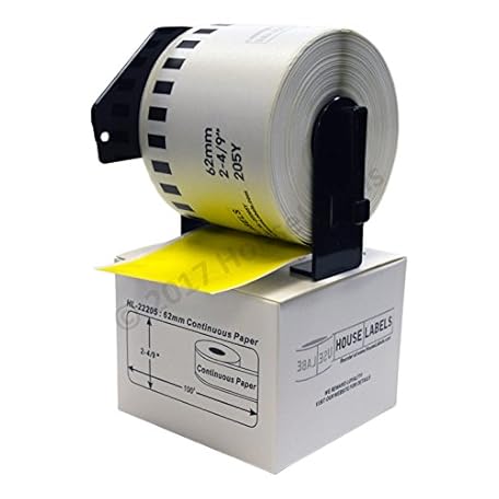 • HOUSELABELS Compatible with DK-2205 Replacement Roll for Brother QL Label Printers; Yellow Continuous Length Labels; 2-4/9" x 100 feet (62mm*30.48m) with 1 Reusable Cartridge - 20 Rolls