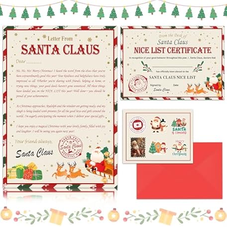 HOWAF Letter from Santa, Christmas Official Letter and Certificate from Santa Claus, Xmas letters Writing Kit with Envelope Christmas Stickers Xmas Cards for Magical Holiday Memories