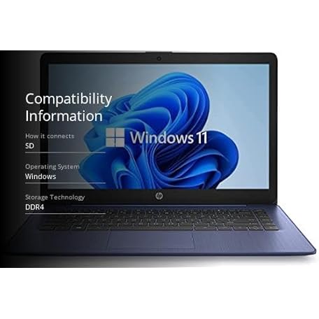 Thông tin sản phẩm HP 14" HD Laptop, Windows 11, Intel Celeron Dual-Core Processor Up to 2.60GHz, 4GB RAM, 64GB SSD, Webcam, Dale Blue (Renewed)