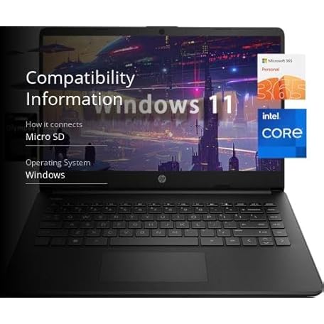 • HP 14" HD Student Business Laptop, Intel Quad-Core N4120, 16GB RAM, 384GB Storage, (128GB eMMC+256GB SD Card), 1 Year Office 365, Slim Design, Webcam, HDMI, Bluetooth, WiFi, Win 11 S, Black
