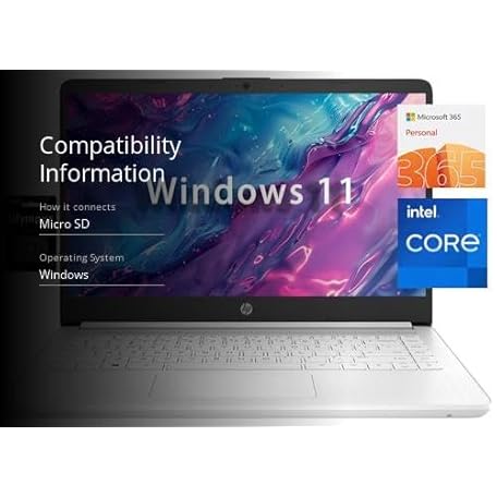Thông tin sản phẩm HP 14" HD Student Business Laptop, Intel Quad-Core N4120, 16GB RAM, 384GB Storage, (128GB eMMC+256GB SD Card), 1 Year Office 365, Slim Design, Webcam, HDMI, Bluetooth, WiFi, Win 11 S, Silver