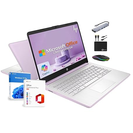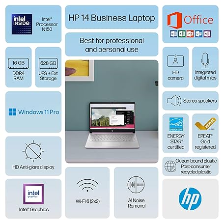 • HP 14" Laptop 2025 Business Student Slim Computer, Lifetime MS Office, Copilot AI, Quad-Core Intel CPU, 16GB RAM, 628GB Storage (128GB UFS+500GB Ext), MarxsolAccessory, Wi-Fi 6, Win 11 Pro, Lavender