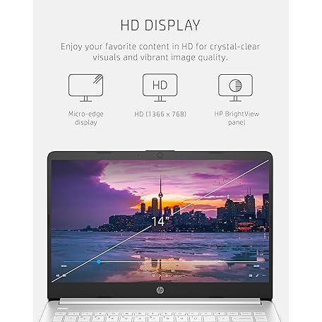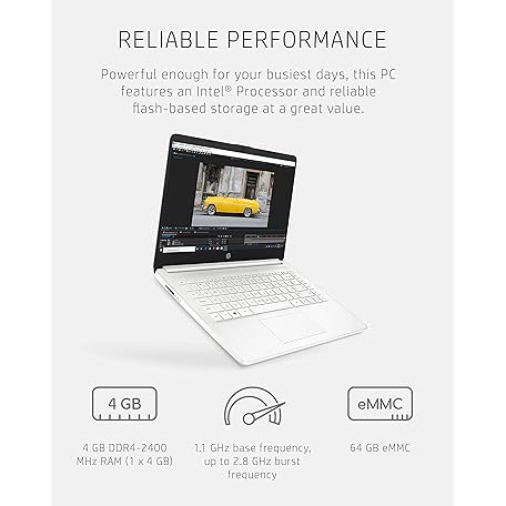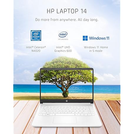 Thông tin sản phẩm HP 14 Laptop, Intel Celeron N4020, 4 GB RAM, 64 GB Storage, 14-inch Micro-edge HD Display, Windows 11 Home, Thin & Portable, 4K Graphics, One Year of Microsoft 365 (14-dq0040nr, Snowflake White)
