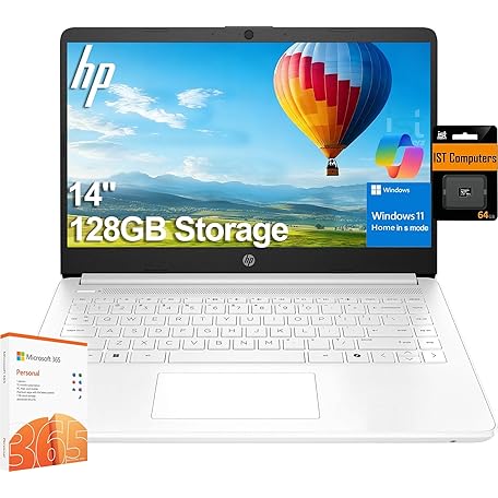 HP 14" Ultra-Light Laptop for Student & Home (1-Year Office 365, Intel Celeron N4500, 4GB RAM, 128GB Storage (64GB + 64GB SD)) 12-Hr Long Battery Life, Webcam, Wi-Fi 6, Fast Charge, Win 11 Home in S