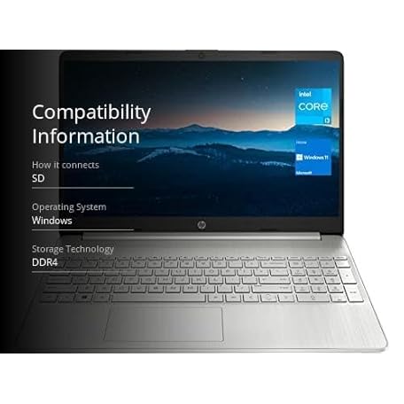 Thông tin sản phẩm HP 15 Notebook, 15.6" HD Screen Laptop, Intel Core i3-1115G4, 32GB DDR4 RAM, 1TB SSD, Webcam, HDMI, Wi-Fi, Windows 11 Home, Natural Silver