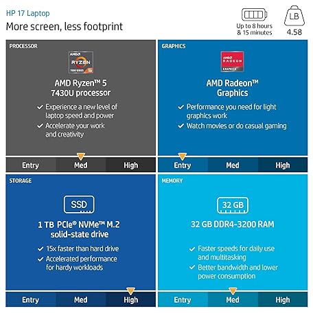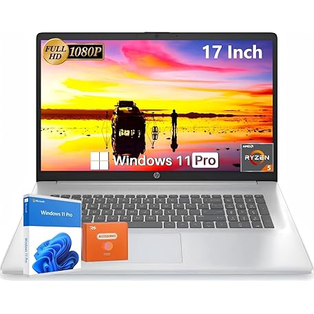 HP 17 inch Laptop, Office Pro Lifetime License, 17.3" Full HD IPS Display, AMD Ryzen 5 7430U, AMD Radeon Graphics, 32 GB RAM, 1 TB SSD, Wi-Fi 6, Copilot AI, Webcam, Windows 11 Pro, w/Accessories