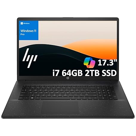 HP 17 Laptop (17.3" HD+, Intel 10-Core i7-1355U, 32GB RAM, 1TB SSD) for Business, Home, Students, Long Battery Life, Narrow Bezel, HDMI, Webcam, Wi-Fi 6, Fast Charge, Win 11 Pro w/ Copilot, Black