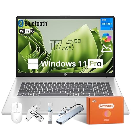 HP 17.3 Business Laptop, Intel 8-Core i3 Processor, 250 Nits Anti-Glare Display, Long Battery Life, 16GB RAM, 1TB SSD, Wi-Fi 6, Bluetooth 5.3, Windows 11 Pro, HD Camera, Copilot AI, RH-Accessories