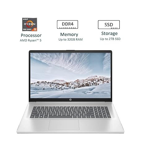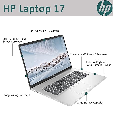 HP 17.3" Laptop, Full HD (1920 * 1080) Display, AMD Ryzen 5 Processor (Beats i7-11370H), 32GB RAM, 1TB SSD, Windows 11 Home, Webcam, Wi-Fi, Bluetooth, Natural Silver, Alpacatec Accessory