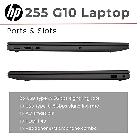 HP 255 G10 15.6" FHD Laptop for Business or Fun, Ryzen 5 7530U CPU (Beat Ultra 7 164U), 16GB RAM, 512GB SSD, Fast Wi-Fi 6, HDMI, Type-C, Windows 11 Pro, w/WOWPC Recovery USB