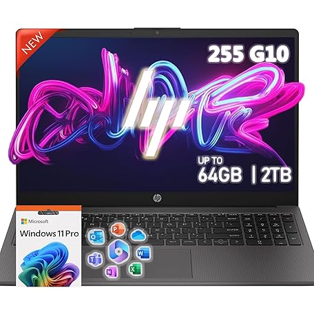 HP 255 G10 Laptop for Home or Work – Speed 6-Core Ryzen 5 (Up to 4.5 GHz), 16GB RAM, 1TB SSD, 15.6" Full HD, USB-C, Wi-Fi 6, Windows 11 Pro & WOWPC Recovery USB – Business and Fun Ready