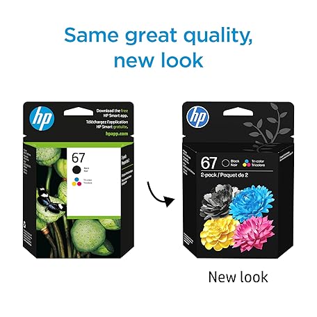 Thông tin sản phẩm HP 67 Black/Tri-Color Ink Cartridges (2-Pack) | Works with DeskJet 1255, 2700, 4100, Envy 6000, 6400 | Instant Ink Eligible | 3YP29AN | Packaging May Vary