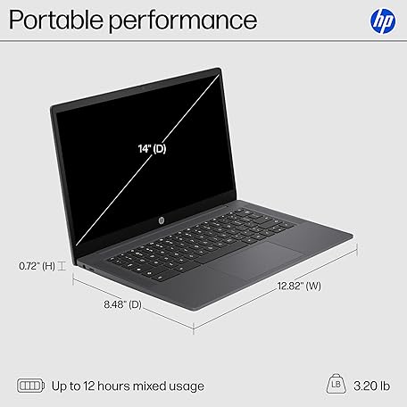 Thông tin sản phẩm HP Chromebook 14 inch Laptop, HD Display, Intel Processor N100, 8 GB RAM, 128 GB UFS, Intel UHD Graphics, Chrome OS, Chalkboard Gray, 14a-nf0099nr