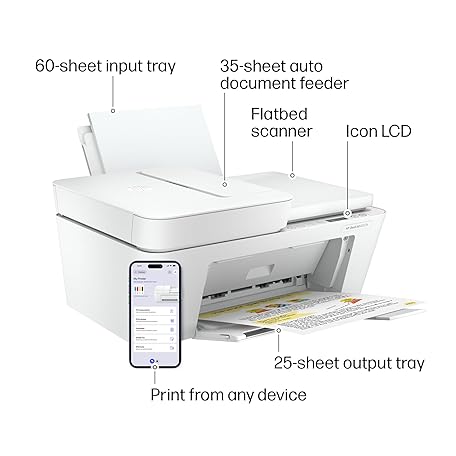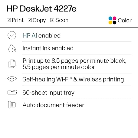 Thông tin sản phẩm HP DeskJet 4227e Wireless All-in-One Color Inkjet Printer, Scanner, Copier, Best-for-Home, 3 Month Instant Ink Trial Included, AI-Enabled (6W7F0A)