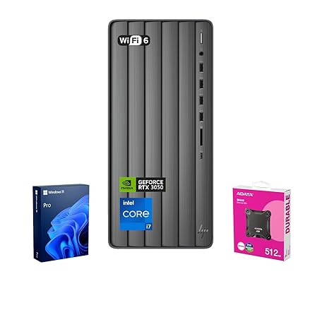 HP Envy AI Copilot Pro Business Desktop, Intel Core i7-14700, NVIDIA GeForce RTX 3050, 64GB RAM, 2TB SSD, RJ45, Wi-Fi 6, Windows 11 Pro, Black, with ADATA 512GB External SSD Bundle