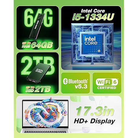 HP Flagship 17 Laptop Computer - 17.3" HD+ Screen, Intel 10-Core i5-1334U, Intel Graphics, 64 GB RAM, 2 TB SSD, Backlit Keyboard, Wi-Fi 6, Windows 11 Pro + Free MS Office for Study and Business Work