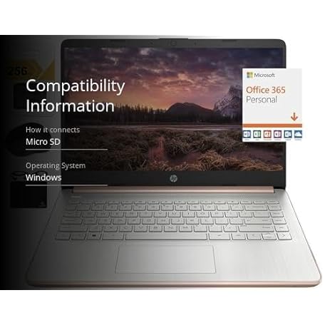 Thông tin sản phẩm HP New 14" HD Ultra Light Thin Laptop, Quad-Core Intel Celeron Processor, 16GB RAM, 320GB (64GB eMMC+ 256GB Card), Wi-Fi, Upto 11 Hours, Windows 11 S + 1 Year Office 365+HubxcelAccessory, Rose Gold
