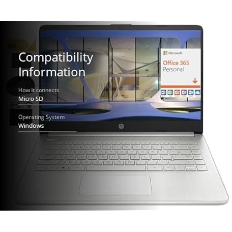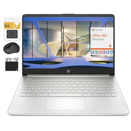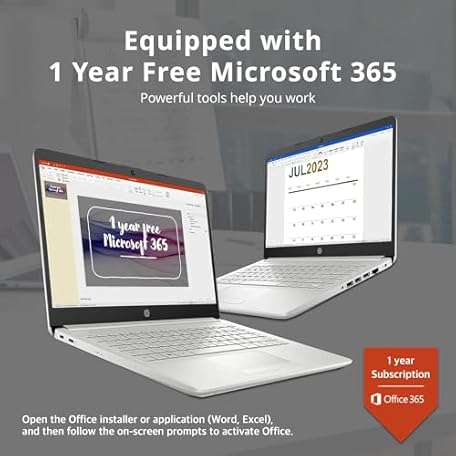 HP New 14" HD Ultra Light Thin Laptop, Quad-Core Intel Celeron Processor, 4GB RAM, 192GB (128GB eMMC+ 64GB Card), Wi-Fi, Upto 11 Hours, Windows 11 S + 1 Year Office 365+HubxcelAccessory, Silver