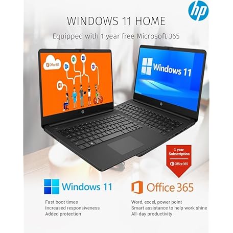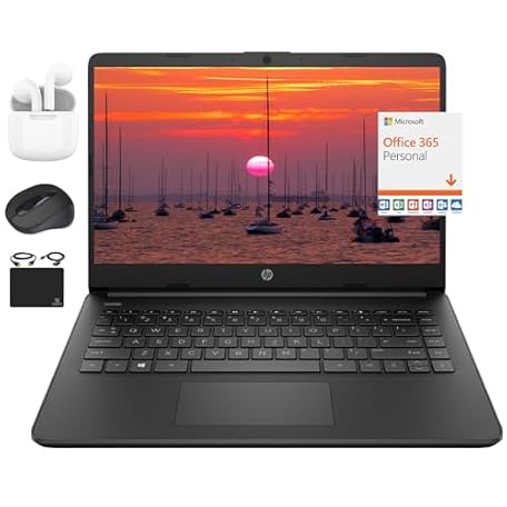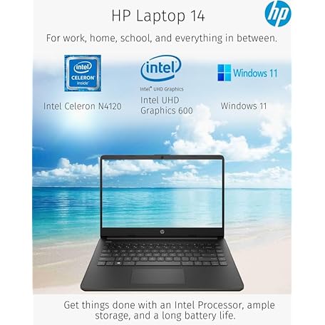 HP New 14" HD Ultral Light Thin Laptop, Quad-Core Intel Celeron Processor, 4GB RAM, 192GB (128GB eMMC+ 64GB Card), Wi-Fi, Upto 11 Hours, Windows 11 S + 1 Year Office 365+HubxcelAccessory, Black