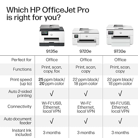 • HP OfficeJet Pro 9720e Wide Format Wireless All-in-One Color Inkjet Printer, Print, scan, Copy, ADF, Duplex Printing Best-for-Office, 3 Months of Instant Ink Included, AI-Enabled (53N95A)