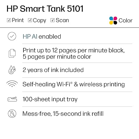 Sản phẩm HP Smart Tank 5101 Wireless All-in-One Ink Tank Printer with up to 2 years of ink included (1F3Y0A) đang được bán với giá ưu đãi là $206.9801 tại nước Mỹ.