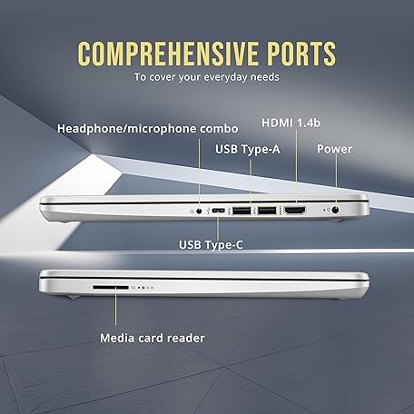 Thông tin sản phẩm HP Stream 14" HD BrightView Laptop, Intel Processor N150, 16GB RAM, 416GB Storage (128GB eMMC + 288GB Docking Station Set), Intel UHD Graphics, 720p Camera, Wi-Fi, 1 Year Office 365, Win 11 S, Silver