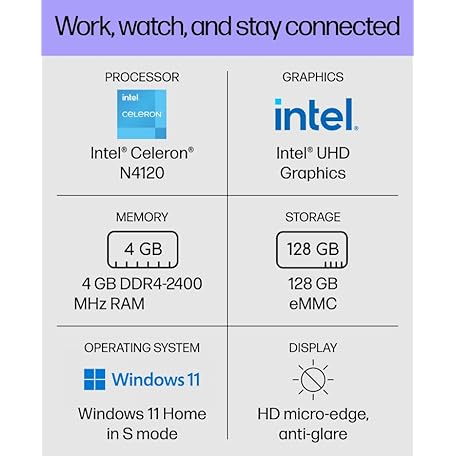 HP Stream 14" HD Laptop | Intel Celeron N4120 Processor, Intel UHD Graphics 600, Microsoft Office 365, 4GB RAM | 128GB Storage, Fast Charge, HDMI, Up to 11 Hours Long Battery Life, Win 11 S