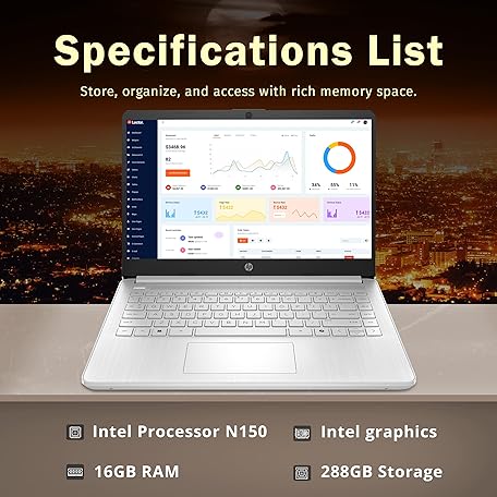 Thông tin sản phẩm HP Stream 14" HD Laptop, Intel Processor N150, 16GB RAM, 288GB Storage(128GB UFS+160GB Docking Station Set), Intel Graphics, Webcam, Wi-Fi 6, 1 Year Office 365, Copilot, Fast Charge, Win 11, Silver