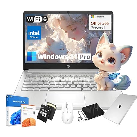 HP Student Business Laptop Computer - Intel Processor N150, 14 inch HD Display, AI-Powered, Lightweight, Windows 11 Pro, Webcam, w/Accessories, 16GB RAM, 384 GB Storage(128GB UFS+256GB MSD), Silver