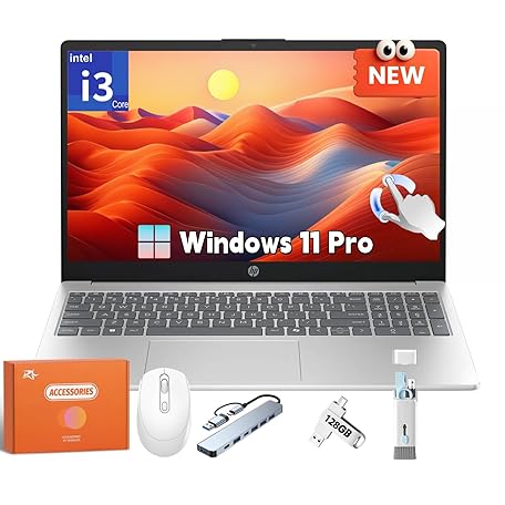 HP Touchscreen Laptop, Intel i3-1315U (Up to 4.5GHz), 32 GB RAM, 1 TB SSD, 15.6" 250 nits Anti-Glare Display, Intel UHD Graphics, Long Battery Life, Windows 11 Pro, Copilot-AI Chat w/Accessories