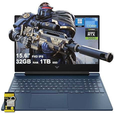• HP Victus 15 Gaming Laptop 15.6” FHD IPS Anti-Glare 144Hz Intel 8-core i5-12450H ( i7-11800H) 32GB RAM 1TB SSD GeForce RTX 3050 Backlit B&O Fast Charge Win11Pro w/ICP Accessory