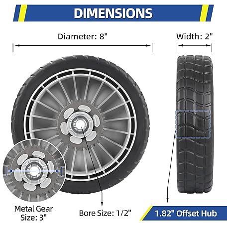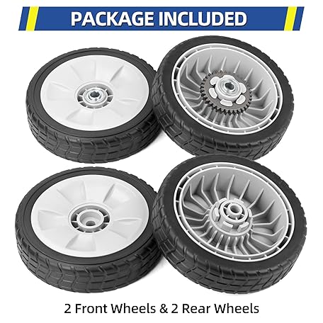 HRR216 Lawn Mower Wheels, 2 Front Wheels 44710-VL0-L02ZB and 2 Rear 42710-VE2-M02ZE for Honda HRR216 HRS216 HRT216 Walk-behind Lawn Mower, 8 Inch Wheels, 4 Pack