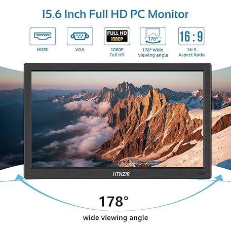 • HTNZIR 15.6 inch PC Monitor FHD IPS Display 1920 x 1080P LED Screen Desktop Monitor with HDMI/VGA/BNC/AV/USB/AV Port,Built-in Speakers, for CCTV Raspberry Pi PC