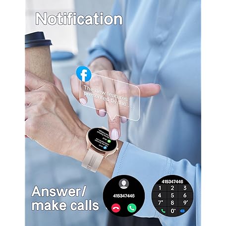 Thông tin sản phẩm HUAKUA Smart Watches for Women Men (Answer/Make Calls) Compatible with iPhone/Android Phones, Round Smartwatch Fitness Tracker with Heart Rate Monitor Sleep/Steps Tracker Waterproof (Starlight/Gold)