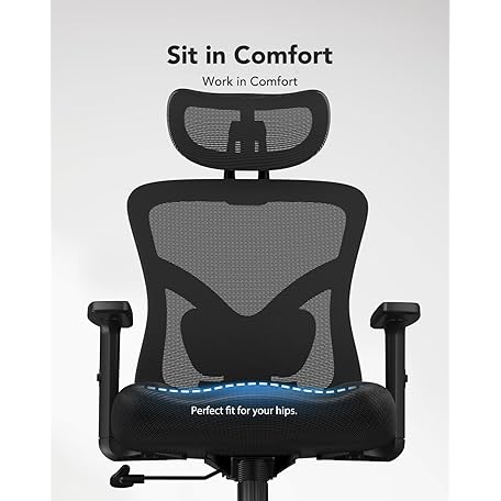 HUANUO Ergonomic Office Chair, High Back Mesh Chair for Big and Tall People with Lumbar Support, Adjustable Headrest and Armrest, Thick Cushion & Tilt Function Recliner for Home Office Black
