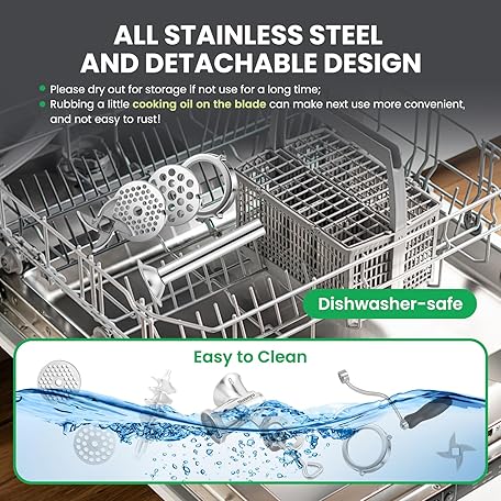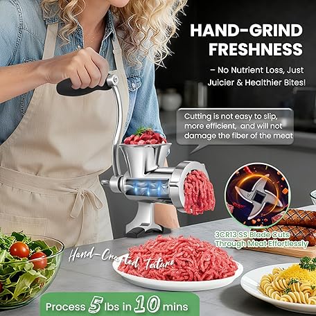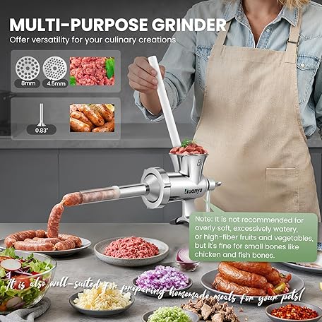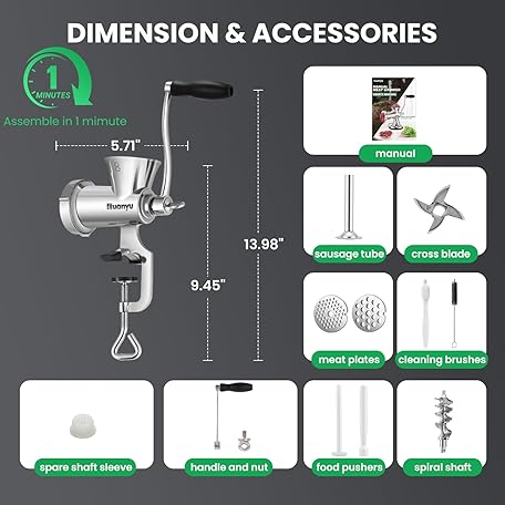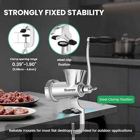 Thông tin sản phẩm Huanyu Meat Grinder Manual - Food Grade 304 Stainless Steel with Sausage Stuffer and 2 Grinding Plates, Table Clamp | Heavy Duty for Beef, Chicken, Small Bone, Chili #M8