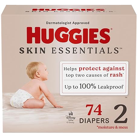Huggies Size 2 Diapers, Skin Essentials Baby Diapers, Size 2 (12-18 lbs), 74 Count, Packaging May Vary