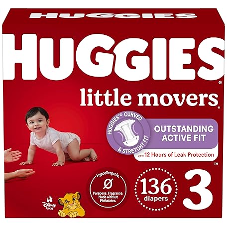 Thông tin sản phẩm Huggies Size 3 Diapers, Little Movers Baby Diapers, Size 3 (16-28 lbs), 136 Count, Packaging May Vary